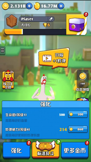 角色能升级,主要就是加生命值、炸弹威力、战斗奖励和挂机收入这几项。升级之后提升还挺明显的,有资源就点。