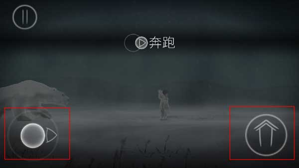 5、故事开头就是小姑娘在一个风雪夜里醒过来,背后有只北极熊在穷追不舍。这时候你得赶紧按住左边的奔跑键,带着她逃离熊掌。