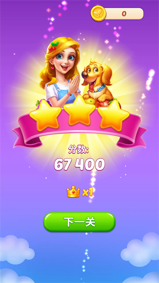 游戏里有只狗子全程跟着你, 还挺萌的, 算是给你这个孤单的消除玩家一点陪伴吧。