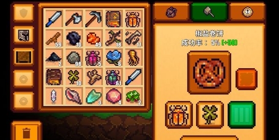 椒盐卷饼的合成成功率是55%,一半一半的几率。我运气还行,就搞到一个蜜糖虫,一次就合成了。果然长得帅还是有点用的,哈哈。