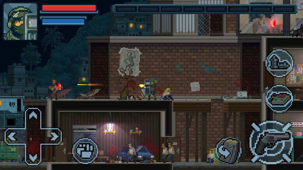 3. 画面和音效做得还行,虽然是2D像素风,但战斗的紧张感一点没少,枪声、爆炸声都挺带劲。