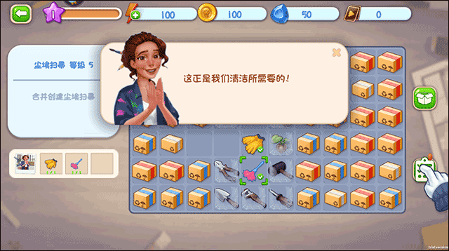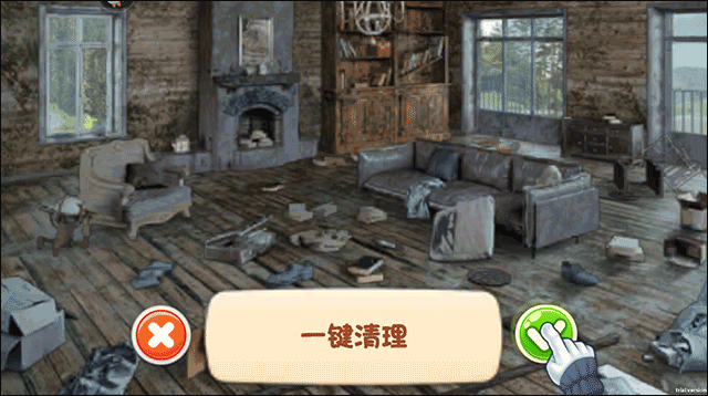 8、交完任务回到大厅,系统会提示你可以打扫卫生了,确认一下就能把屋子里的垃圾清掉。