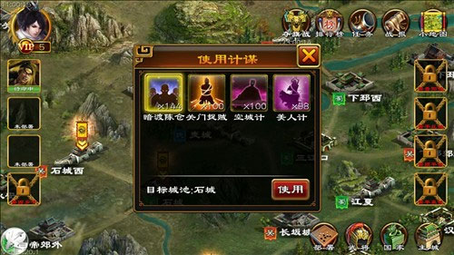 这次更新还加了计谋系统。打国战的时候,玩家可以选择用计谋技能来强化自己的城池。用计谋需要消耗一定数量的“兵书”,计谋一用出去,全服都能看到公告,倍儿有面子!计谋效果五花八门,有能直接传送武将的,有能把敌人武将蓝条清空的,还有召唤NPC帮忙攻城的,甚至还有专门削弱对面男性武将伤害的。不过有一点,城池要是被攻破了,那不管你用了啥计谋,效果都会立刻消失。