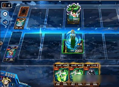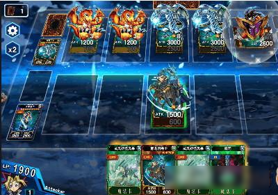 1、第一回合,用两只青龙召唤士去撞对面的宝贝龙,送掉之后触发效果,用威风妖怪风暴清掉两条青眼白龙。