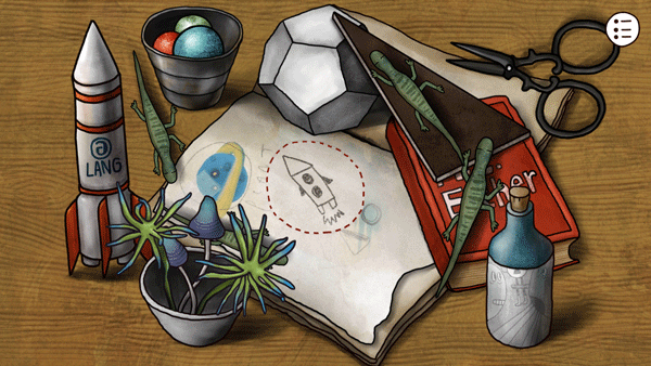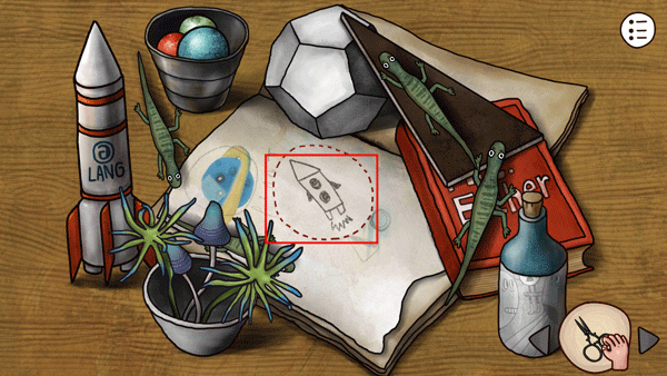 3、拿到剪刀之后,再点一下墙上那个火箭的图纸,把它给剪下来。