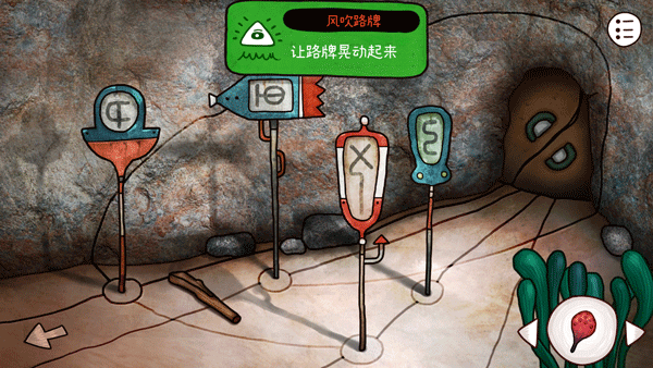 8、从树上下来,往右下角走,会看到一堆路牌。挨个摇晃它们,又能拿一个成就。