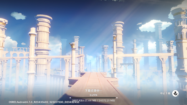 3、点屏幕开始游戏。要是第一次玩,得先下载一个24G的数据包,耐心等着吧。下载完,捏个脸,就能正式进游戏了。下载界面长这样。