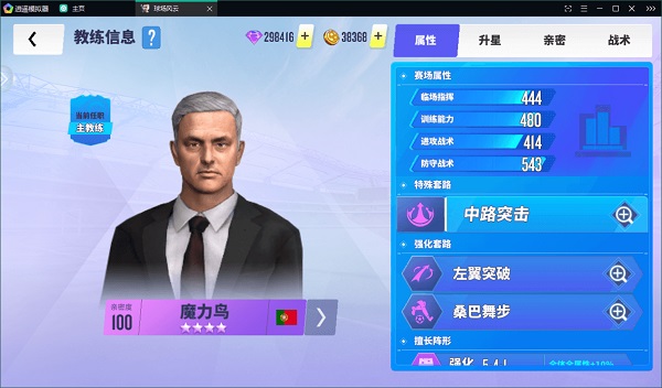 你随便点一个教练的头像,就会跳出这个教练的养成界面。这里能看到教练的各项属性、战术风格和擅长的阵型。每个教练都能升星,最高五星,升星能解锁特定的阵型和战术。亲密度是用来提升教练属性发挥的,要是亲密度满了,还能给全队球员加属性。最后,不同品质的教练能装对应品质的战术书,这玩意儿加的战力相当可观,就是不太好弄,希望后面能多出点产出战术书的活动吧。