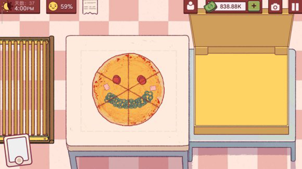 客人说完要求,你点了“好的”那一刻,钱就先到账了。但别高兴太早,你做披萨的时候,右上角会实时扣掉你用的材料费。最后披萨交到客人手上,他给你的那笔钱其实是小费。要是没给,那多半是遇上小偷了,或者他的心情值掉到40%以下。要是被扣了8块钱,那肯定是你放错料了,不是多了就是少了。放心,因为前期已经收了基础费用,所以实际亏损没那么大。