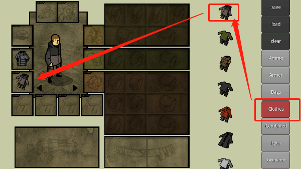 2、就看下面这张截图,我在内搭衣服里随便选了一件,直接用手把它拖到对应的格子里就行。