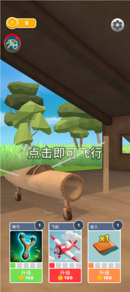 6、拿到金币后,记得第一时间去升级飞机、弹弓和离线收入,让性能越来越强。