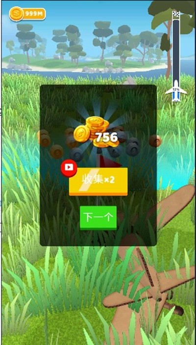 5、飞行结束后,会根据距离给你结算奖励,点“下一个”继续。
