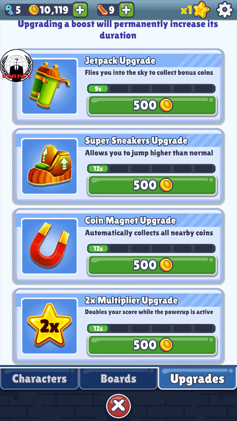 3、道具种类确实丰富,磁铁、双倍分、护盾这些经典玩意儿都有。你可以用跑图赚来的金币去买这些道具,让游戏过程更有策略性。