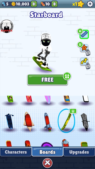 4、滑板这东西必须得提一嘴,屏幕上快速点两下就出来了。这玩意除了能让你跑得更快,关键时刻还能帮你挡一次撞击,等于多条命。