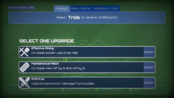 6、每过一关,系统会给你个三选一的机会强化飞船。想拿高分就得不停地刷,不停地强化,老套路了。