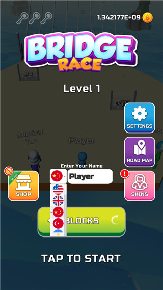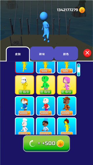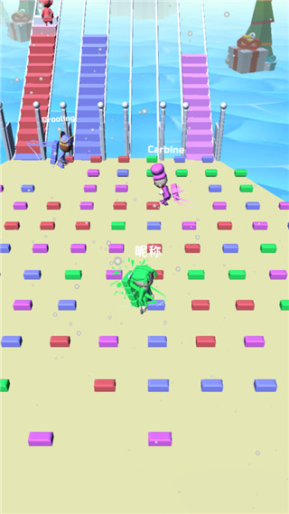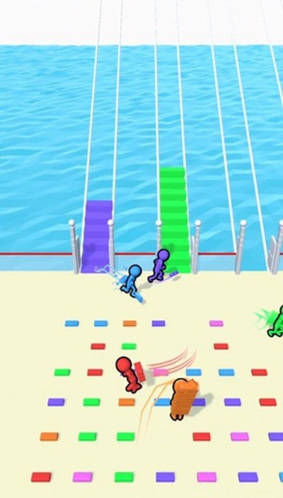 5、直接点开始就能开干。记住,只捡和自己角色颜色一样的砖块,目标就是抢在所有人前面搭好桥冲线。