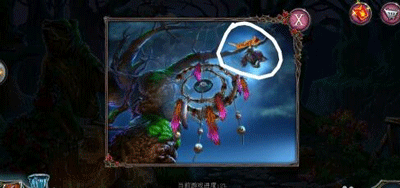 8、点击树上黑鸟挂件,让小猫将其取下。