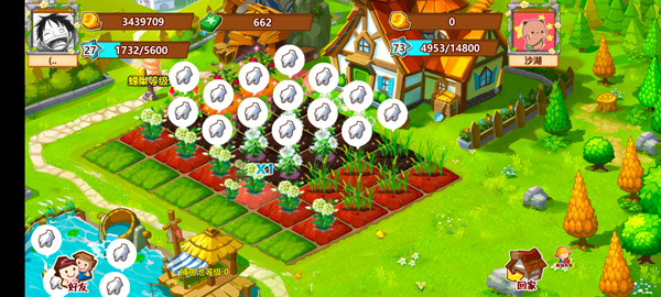 4、作物成熟或者长虫长草都会有气泡提示,点一下就行。偷菜也一样,摇一摇手机就能全收,省了不少事。