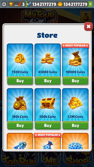 1. 刚上手实测了一下,最不费脑子的方法就是充钱。打开地铁跑酷Ezrfex星空版,点进商店,找到最下面的货币页面,充值之后就能买一大堆金币了。给你们看个截图就明白了。