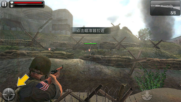 3、手指在屏幕上划拉就是瞄准,对准了人就点开火键。操作逻辑跟大部分射击游戏一样。