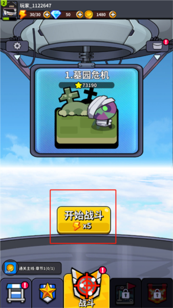 进游戏主界面,别瞎瞅了,直接点那个大大的‘开始战斗’就对了。就下面截图里这个。