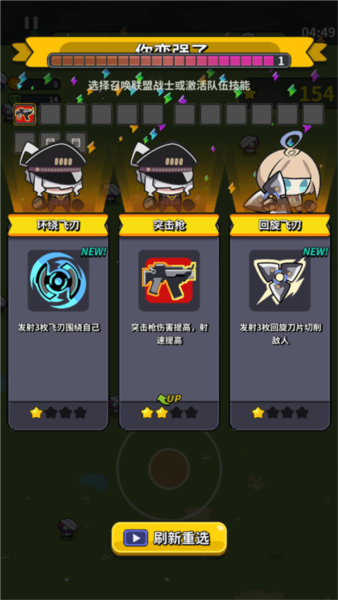 3、拾取足够的能量即可升级,升级后会给你三个技能,你需要在三个中选择一个