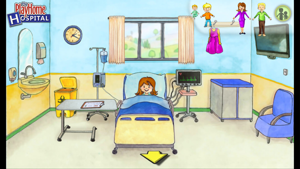 3、医院里有好几个场景,戳左右两边的箭头就能来回切换。