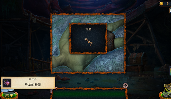 5、桌面谜题解开后,会给你一根绳子。然后用刚才从兽人身上摸出来的那把钥匙,去开右边的箱子。