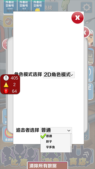 4、追你的人也能换。在同一个界面,把追击者改成胖子或者宇多鱼都行,味儿更冲。设置完直接关掉窗口,就能开跑了。