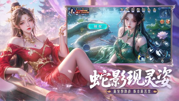 美术风格是那种水墨国风,云雾缭绕的仙山看着挺舒服的,不是那种油腻腻的页游画质。UI稍微有点复古,但功能确实没毛病。各种法宝和神兵的流光特效也做得比较华丽,御剑飞行、腾云驾雾这些经典场面都还原了,东方玄幻那味儿很正。