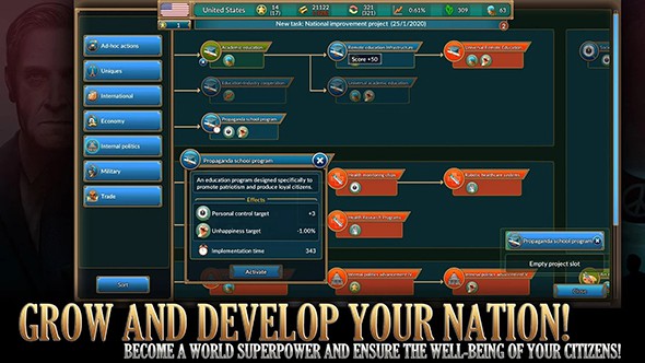 5、外交手腕、经济优势、军事力量,再加上你自己的道德判断,把这些都利用好了,才能成为世界超级大国,让你的人民过上好日子。