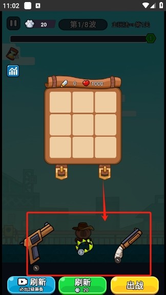 3、看到这个按钮没,点一下可以换一批新武器出来。