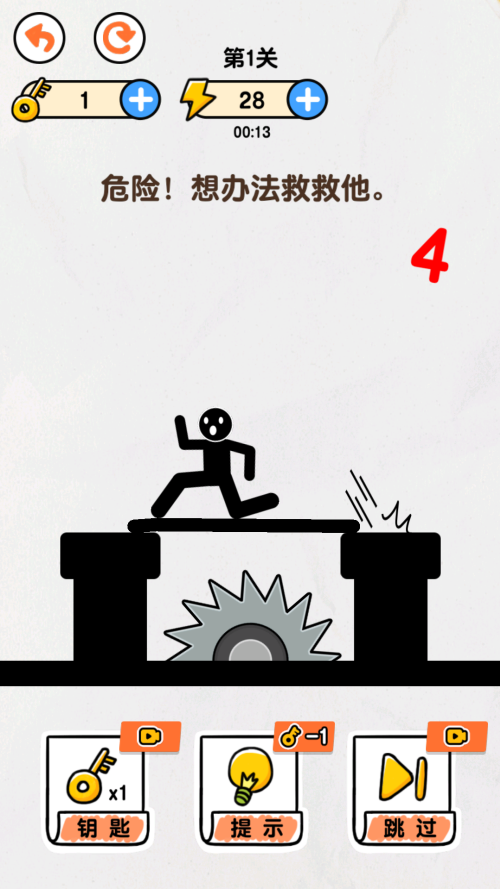 4、行了,基本操作就这些。赶紧开动你那个快生锈的脑子,用你那堪比毕加索的画技,去救更多的小火柴人吧。