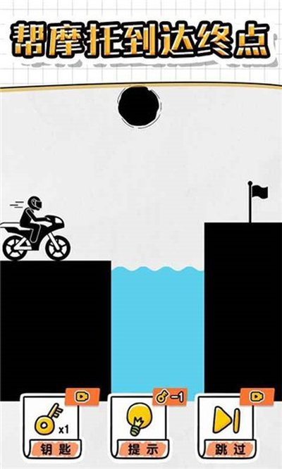 2、你看第一关,纯属白给。直接在两个柱子中间连根线,让火柴人能稳稳当当站上去,别掉下去被那些乱七八糟的东西碰到就完事了。看下面这张截图,就这么画。