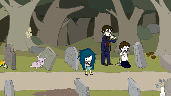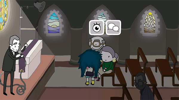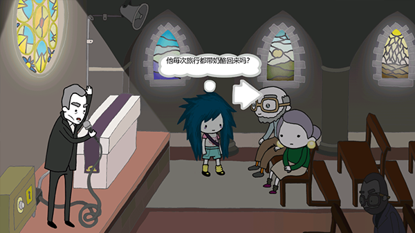 9、对话完成之后,查看墓园当中的东西之后返回教堂当中,和妈妈进行对话。返回肉店当中