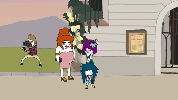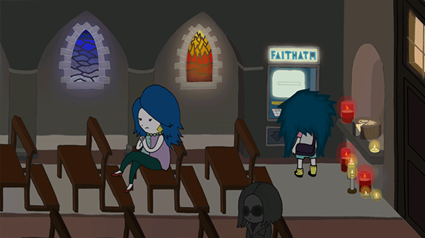 5、向右走和小男孩进行对话,之后进入身后的教堂当中。