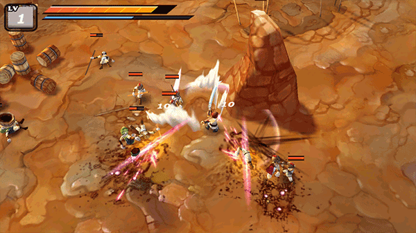 这游戏操作上没那么多花里胡哨的,不用你疯狂点屏幕,指定个方向点一下就能把动作都放出来,挺省事的。全触屏玩起来很顺滑,技能特效和砍到肉上的感觉结合得不错。角色跳起来砸人、快速冲锋这些动作都挺带感,搓起来确实有沉浸感。