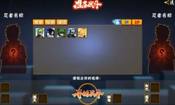 3、然后就是选人界面了。角色、秘卷、通灵兽都得选好。看截图,1P就是你,2P是你朋友,两边都确认完毕才能开打。
