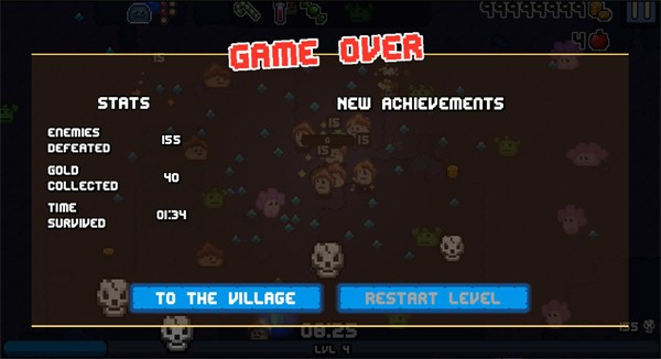 7、血条空了就寄了,闯关失败就送你回村子,用刷到的资源买点道具啥的,下一把会更强。