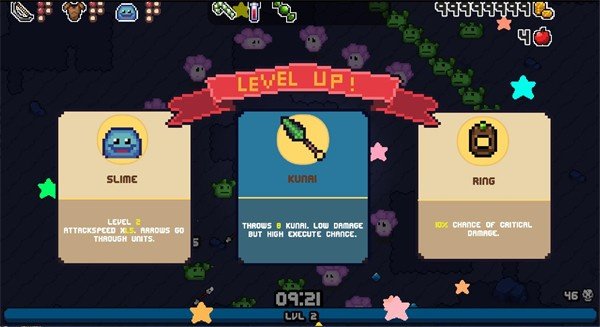 6、每次升级都会跳出三选一的强化,看你运气了,都是随机的。