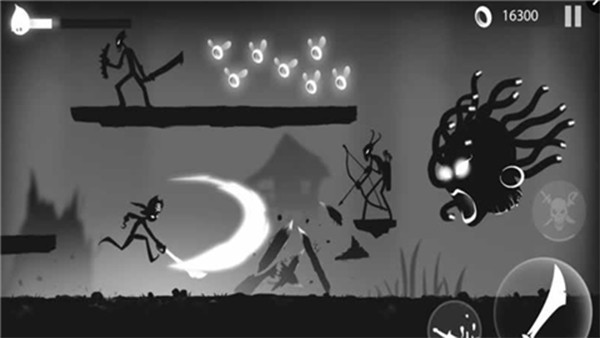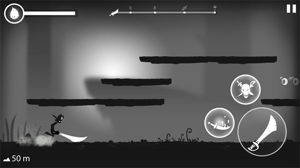 3、美术风格就是那种极简的黑白剪影,放弃了复杂的颜色,全靠明暗对比来突出战斗的爽快和刺激感。