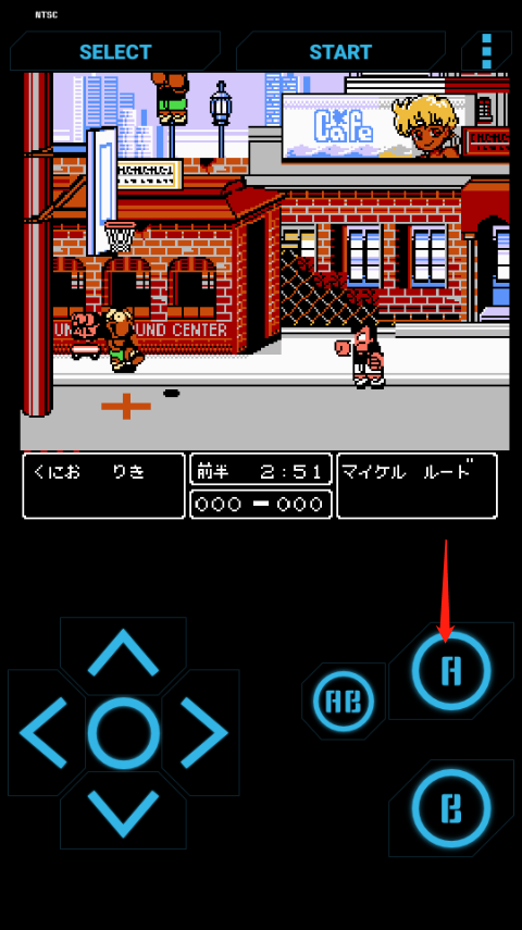 1、A键就是出拳,手里拿着球的时候按就是传球。地上有板砖啥的也能用A键捡起来砸人。要是触发单挑了,连按A键可以指挥你的队友干活。
