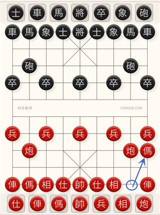 开局第一步就把炮平到仕角的位置,后面可以根据情况变成反宫马、单提马这些阵型。后手方现在比较喜欢还一个反手中炮,或者直接挺卒来对抗。