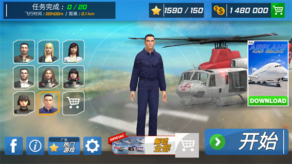 1、在本站进行直升机飞行模拟游戏的下载安装操作,打开游戏,进入到游戏主界面中去,我们会看到相应的游戏界面,我们在这里可以选择自己喜欢的形象开始游戏。