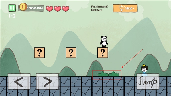 2、撞击问号方块可以获得金币,前两个没事,第三个下方会出现陷阱,可以直接跳跃到方块上过去。