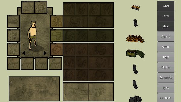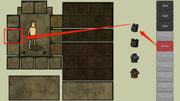 进了主界面之后,右边有一长串的分类框,除了顶上那几个功能键(save/land/clear),剩下的随便点一个,都是对应不同部位的装备。