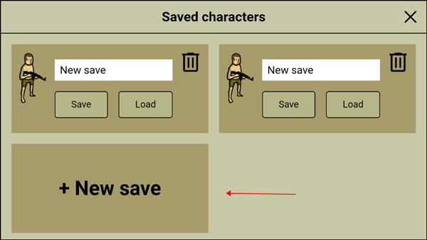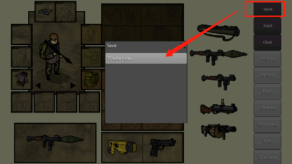 人物全身都搭配好之后,千万千万记得点“save”,然后再选最下面的“creat new”来保存。这样保存完,你就可以接着搞下一个兵人了。想删哪个存档也简单,点那个存档后面那个垃圾桶图标就行。
