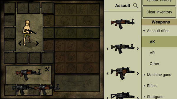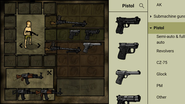 而且,这游戏里的武器和装备型号外观都挺写实的,基本都是现实里有的东西。大部分道具还给你标了重量,细节控狂喜。什么指南针、打火机、电池,甚至连土制炸弹都有,上百种道具装备,搭配的可能性多到离谱。