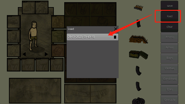 5、之后想用这套搭配,直接打开“load”,就是下面这张图里这个选项,选中你刚才的存档,一键就能换装,方便得很。