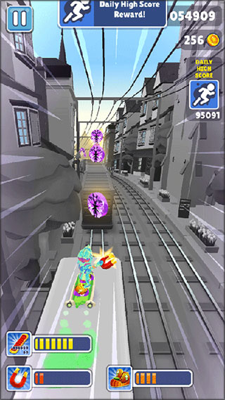 5、就这么反复横跳。这招要求你胆大心细,手不能抖,要是有滑板护体,那成功率能高不少。至于猥琐流的技巧是这样的,尽量靠右边的隧道跑。为啥?你们有没有发现,这游戏的跑道不是一条直线,它是带点弧度的,从右往左拐。
